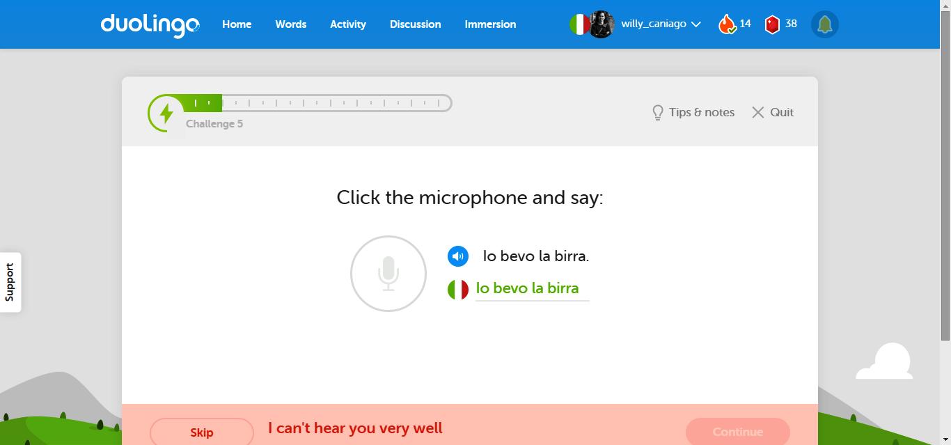 Setiap hari, kosakata yang Anda miliki akan bertambah setidaknya lima kata sampai sepuluh kata. Anda pun dapat memperlihatkannya dengan mempraktikkan langsung pada teman di forum Duolingo.